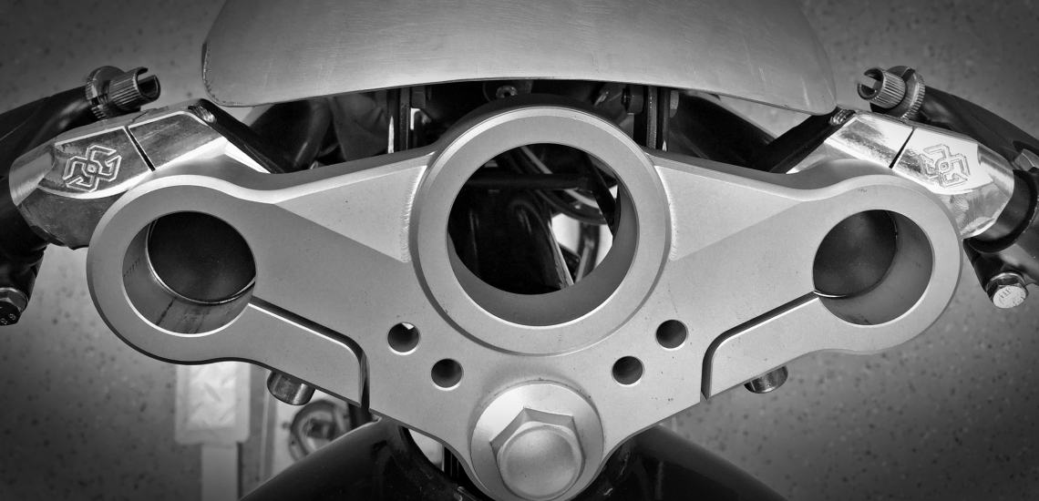 The original yoke of Yamaha SR250, made in 1981, was very functional, full of technical holes, threads and sidings. It was ready for top bar clamps, but the new bike will have clip-on handlebar clamps. So, there had to be something done with it.